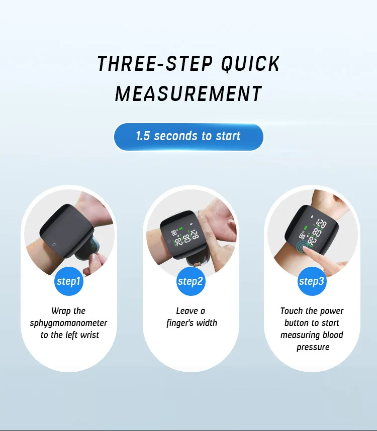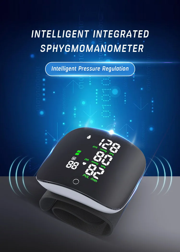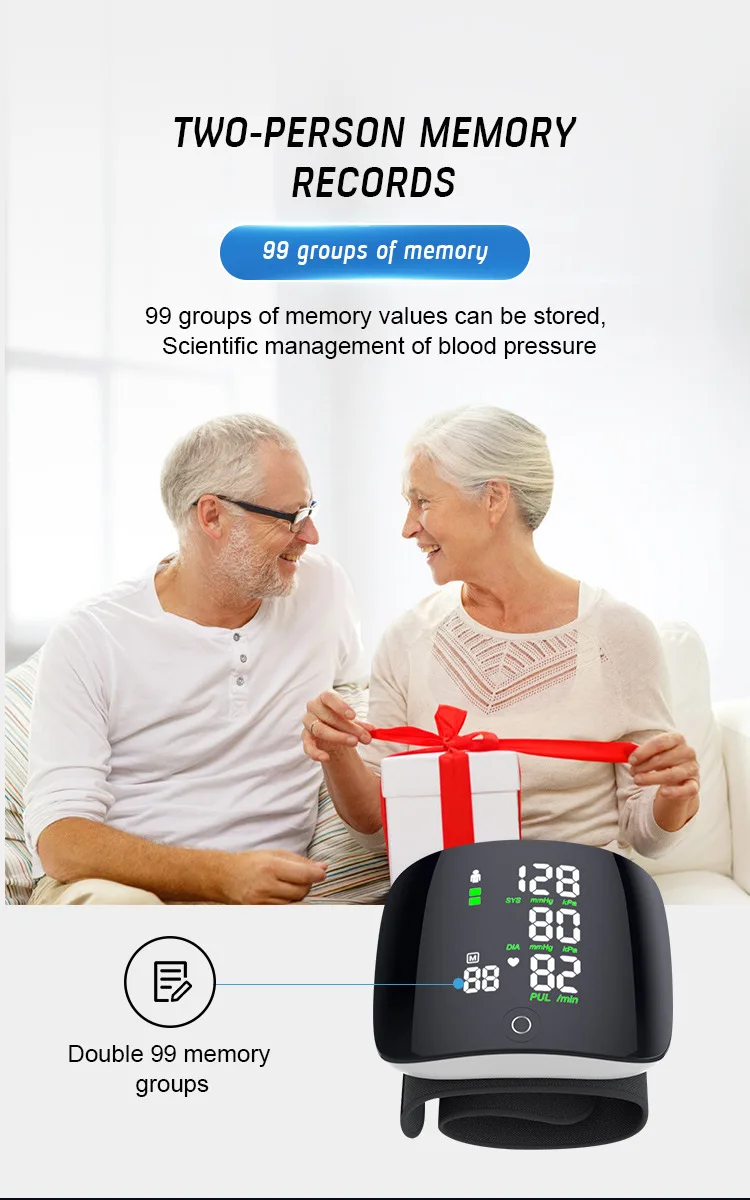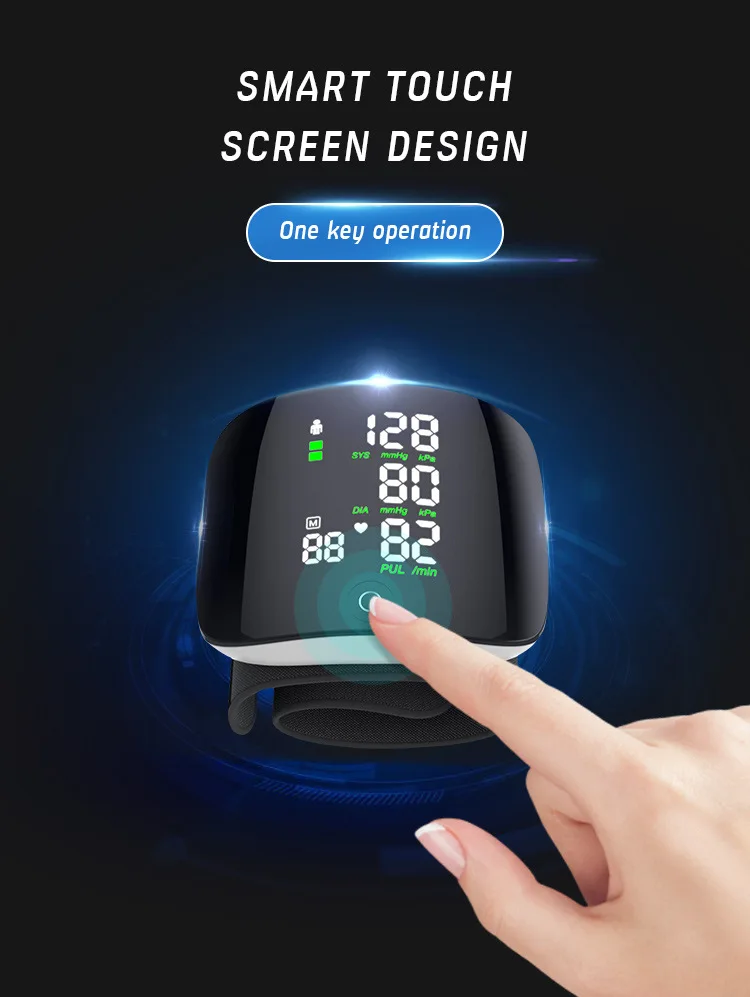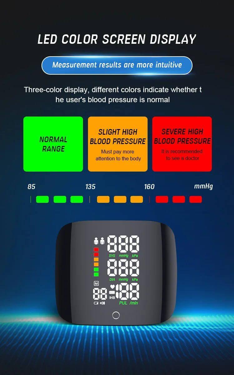 2024 Blood Pressure Monitor Three-color Screen Wrist Measurement Hypertension Detector Voice Charging Blood Pressure Monitor